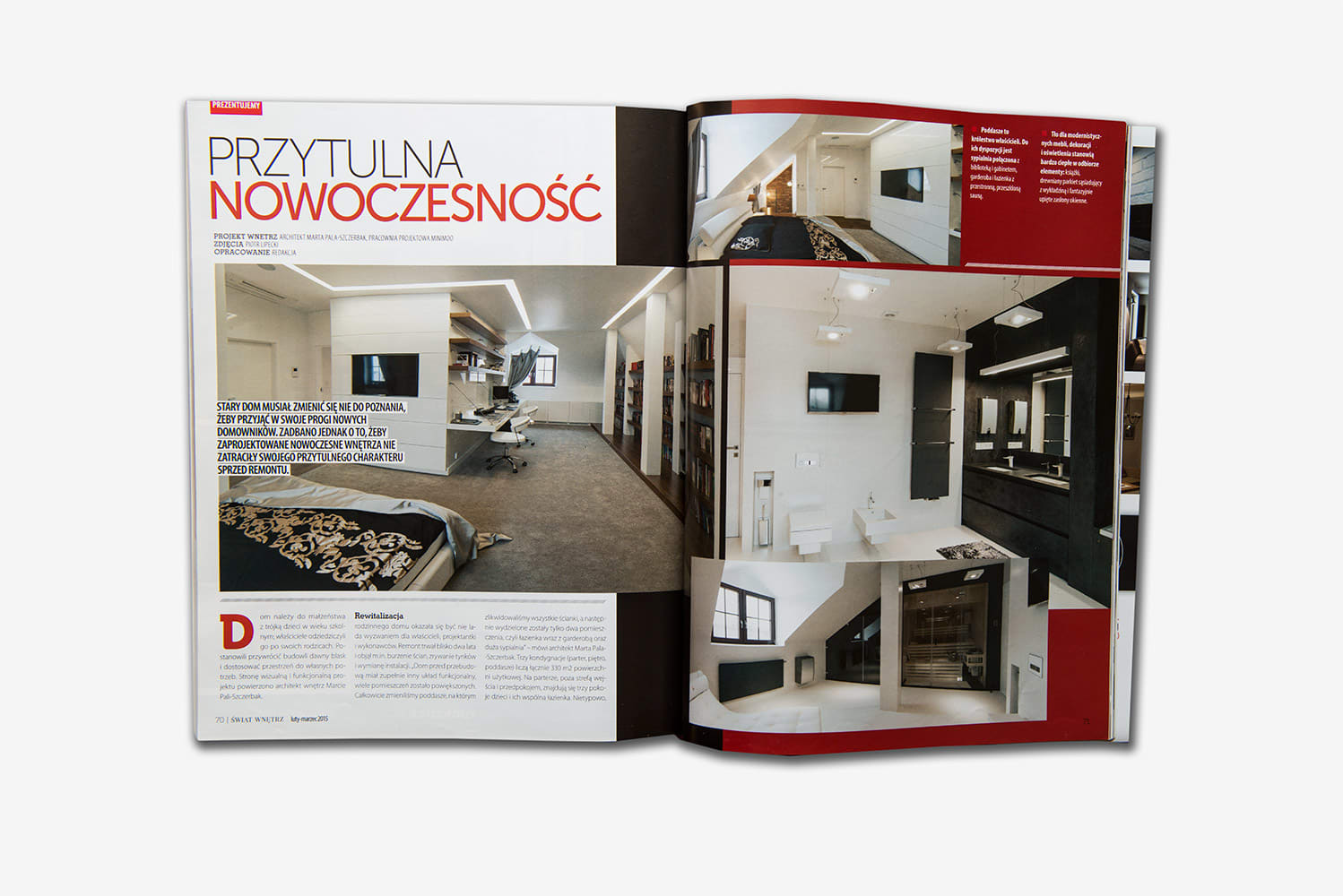 Projekt wnętrz zrealizowany podczas przebudowy starego obiektu. Willa znajdująca się nieopodal lasu została rozbudowana i przy tej okazji, w pewnym sensie „zaktualizowana” o współczesne rozwiązania. Architekt wnętrz podczas realizacji zadbała o nowoczesne i ekskluzywne rozwiązania naszych czasów przy jednoczesnym wykorzystaniu starych ponadczasowych elementów willi, doskonale się dotychczas sprawdzających. Nowoczesna aranżacja przestrzeni w tym domu, składającym się na projekty kilku sypialni, kina domowego, pokoju z bilardem, łazienek i wielu innych pomieszczeń zaowocowała stworzeniem ciepłego i spokojnego miejsca do życia dla dużej rodziny, w domu z którego okien niezmiennie rozpościera się widok na las.